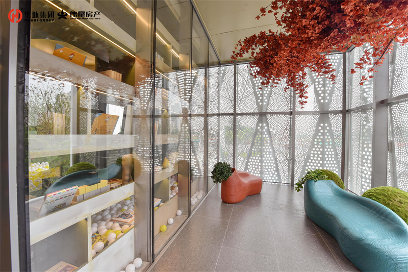 整個營銷中心以極具特色的丹霞地貌為色彩靈感。美學藝術、潮流引領、年輕生態、社交互動四大理念交織,一座“峽谷咖啡廳”,氤氳美好生活??Х?、書店、座談、游趣……讓建筑不再冰冷,而是成為生動的、溫暖的、富有趣味的生活主場。