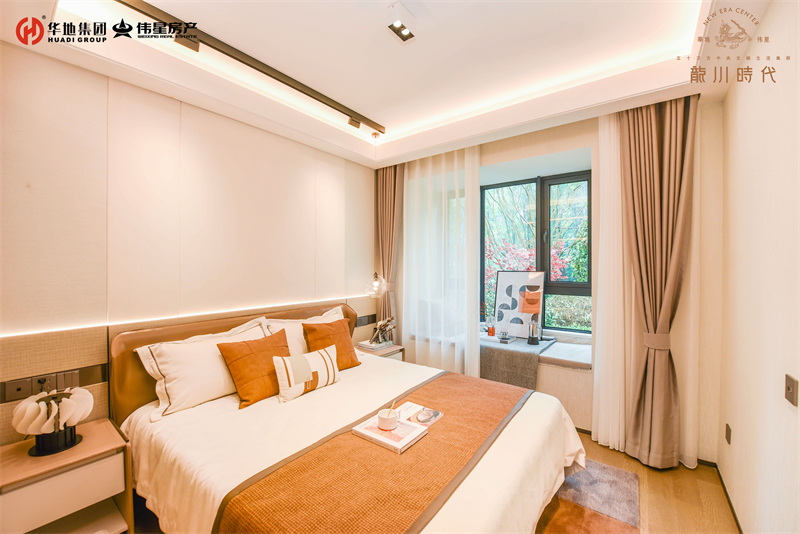 樣板間以金棕灰和落日咖為基調,色彩上彰顯出新青年的活力,空間格局上,最大化延展實用功能,是二人世界到三口之家的舒居優選。三開間大面寬采光,陽光清風常伴家中,獨立書房,滿足家庭需求變化,兒童房、興趣室隨心創改。在89㎡戶型中,寬境主臥是其一大亮點,不僅貼心地預留了衣柜的位置,還額外增加景觀飄窗的空間巧思,增加室內采光的同時,還賦予空間更多使用面積。
