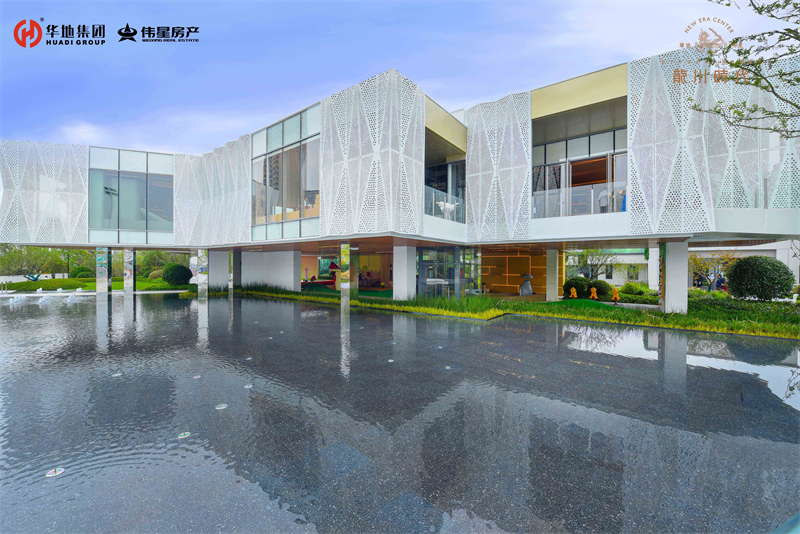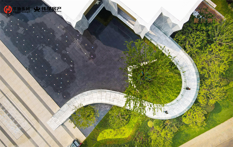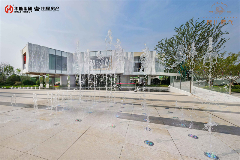 緩緩步入美好生活館前廣場,依次映入眼簾的就是懸浮建筑體、鏡面水景、旱噴設計、自然綠景和特色鋪裝,從低到高,從現實到夢幻,組成五維立體視覺。自然的留白,建筑的低語,讓人流連忘返。