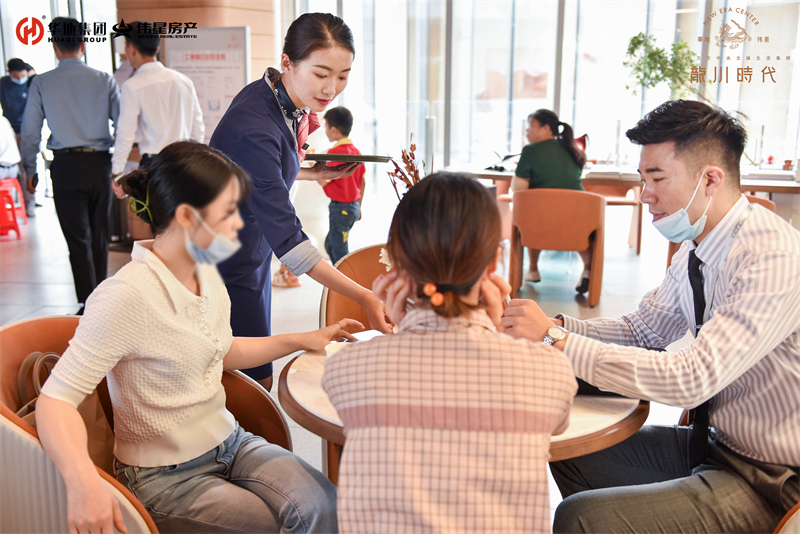 在示范區開放之前,華地偉星·龍川時代就受到市場的強烈關注和高度追捧??蛻纛A約爆滿,本次開放現場進行分流參觀,但還是難擋客戶的熱情。除去美麗景致外,華地偉星·龍川時代與客戶之間的美好緣分也在延展,來來往往人流如織,置業顧問用他們的熱情耐心地接待每一組訪客。每一組客戶到來,他們都主動上前,一絲不茍地為他們引導至內場、細心講解,客戶滿意的笑容是館內最美好的風景。
