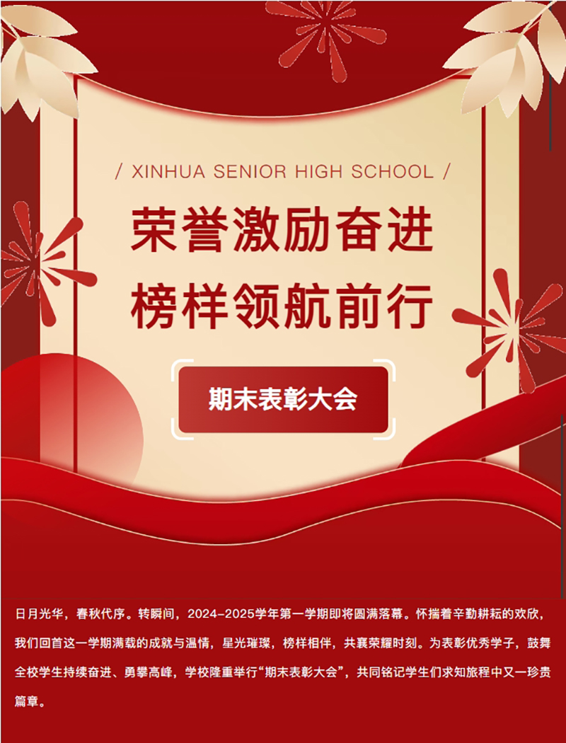 榮譽激勵奮進 榜樣領航前行——新華高級中學2024-2025學年第一學期表彰大會