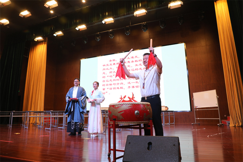 擊鼓三聲,以示從今啟蒙,以立志向。一通鼓:學(xué)子如斯,高山景行;二通鼓:五育并舉,六藝均衡;三通鼓:開筆啟智,慧悅?cè)松?/font>