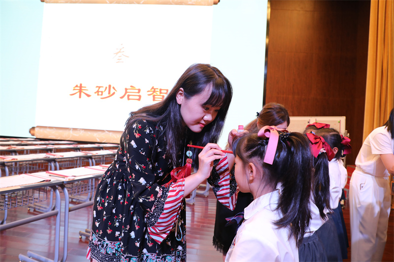 額間點紅痣,心中有智慧。將美好祝愿凝聚在這朱砂的中國紅上,相信同學(xué)們一定會成為至善博學(xué)的人!