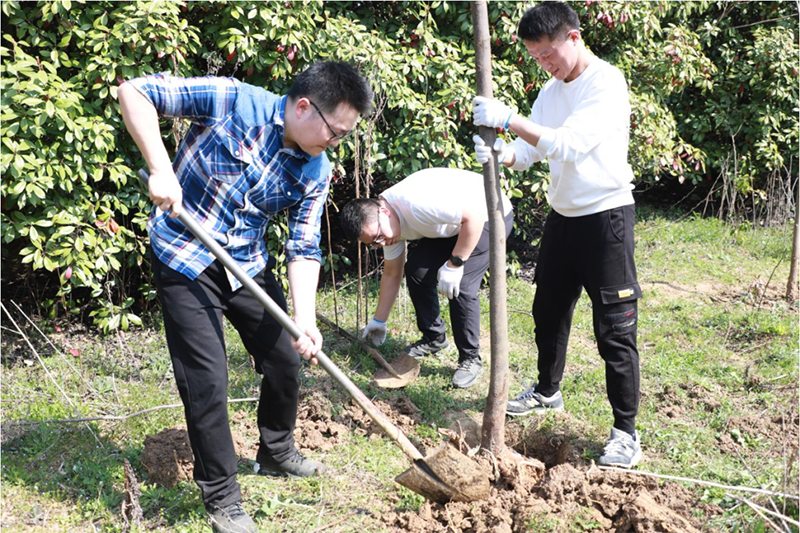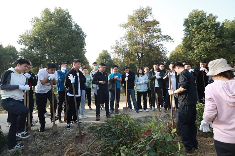 植一株綠色,溢一片春光。格林生態總部員工一大早就集合在苗圃,他們希望通過此次植樹活動為苗圃增添“綠色新衣”。在專業人員的指導下,大家揮鍬鏟土、扶樹正苗、澆水培土,栽下一棵棵樹苗。三五人一組,分工合作、默契配合,男生挖坑、鏟土,女生扶苗,填埋,到處都是勤勞忙碌的身影。