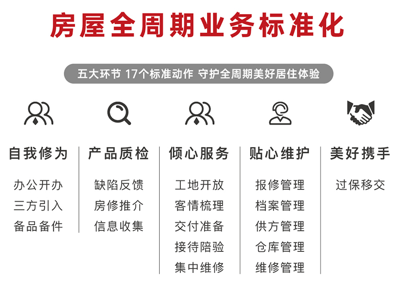 “我們的標(biāo)準(zhǔn)是什么?”“做到什么程度才叫標(biāo)準(zhǔn)化?”華地房屋維保中心團隊從工作中總結(jié)經(jīng)驗,對標(biāo)行業(yè)標(biāo)桿,取長補短。本著“以客戶為中心”的宗旨,伙伴們多次修訂終于完成了華地房屋維保七步法、全周期業(yè)務(wù)標(biāo)準(zhǔn)化的編制,包括自我修為、產(chǎn)品質(zhì)檢、傾心服務(wù)、貼心維護、美好攜手等五大模塊標(biāo)準(zhǔn)化。