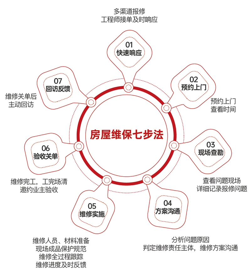 “加了房修工程師的微信,服務(wù)態(tài)度很好,主動上門,不僅把我家的問題處理好了,還不厭其煩地給我解答了很多房屋保養(yǎng)的知識,感覺很貼心。”——業(yè)主劉先生