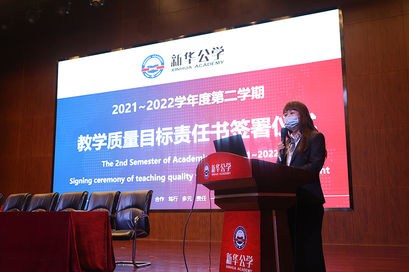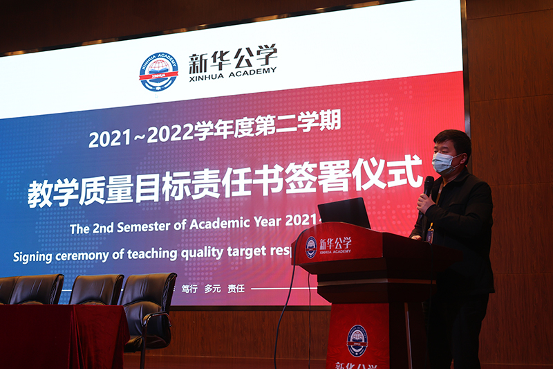 儀式最后,張校長(zhǎng)對(duì)教育教學(xué)工作作了重要部署,他指出:教育教學(xué)成績(jī)是衡量學(xué)校教育教學(xué)質(zhì)量的生命線,是社會(huì)關(guān)注的焦點(diǎn),是家長(zhǎng)討論的熱點(diǎn),各位教師應(yīng)當(dāng)結(jié)合我校小班化教學(xué)特色,努力給孩子提供個(gè)性化的成長(zhǎng)方案,充分做好課程與作業(yè)的分層,不能讓目標(biāo)僅僅寫(xiě)在紙上,而應(yīng)將立德樹(shù)人的使命目標(biāo)刻在心底,努力讓每一個(gè)孩子都能在新華公學(xué)找到歸屬。