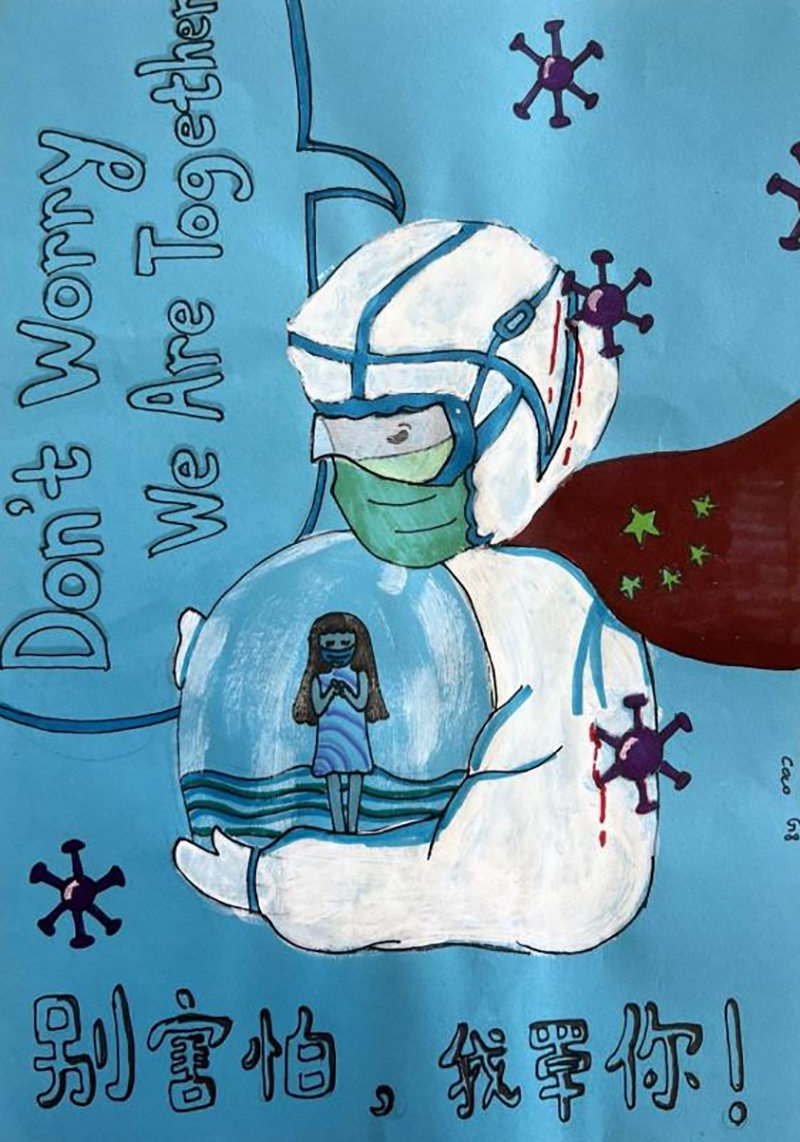 同學們從“防疫、和平、環境、保護動物...等等人文角度,開展了一系列藝術創作。