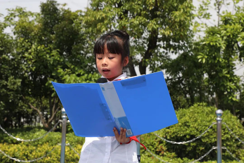 四年級老隊(duì)員代表史依可同學(xué)娓娓道出作為少先隊(duì)員的光榮感、責(zé)任感和使命感。