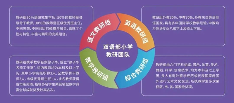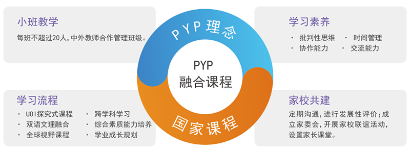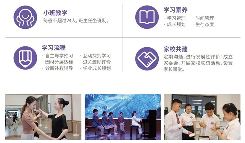 小學課程與教學活動圍繞興趣培養、學習技能及思維方式進行編排;各學科中外教師共同備課,幫助學生建立廣泛的知識關聯;設置多學科融合探究,提升學科素養;分層教學模式及項目式合作學習,針對性提高學生的學術水平;鼓勵學生參與實踐活動,提高學生獨立思考與合作創新能力。