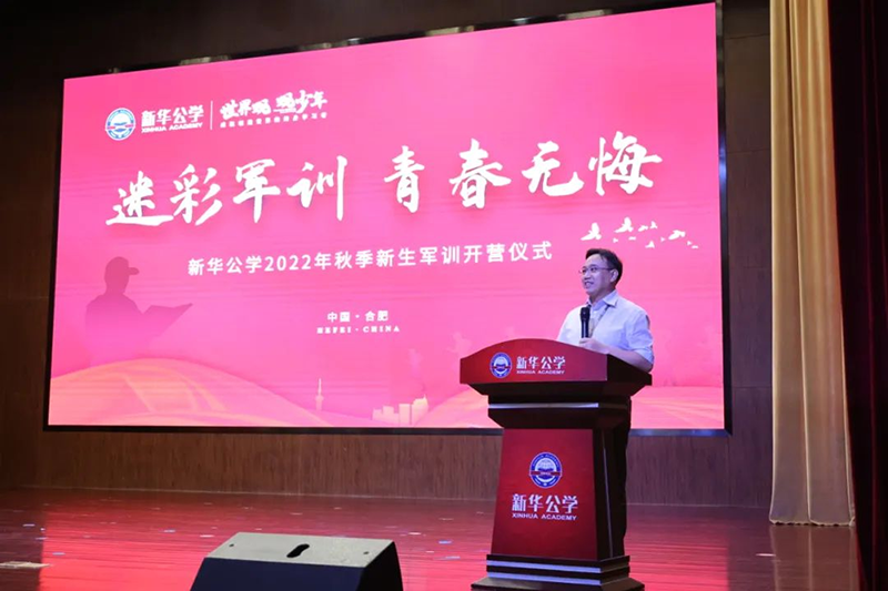 隨后新華公學(xué)總校長(zhǎng)秦新春給同學(xué)們帶來(lái)了殷切的期望和囑托。他表示,軍訓(xùn)是邁入人生新階段的第一課。因此,通過(guò)軍訓(xùn)的磨練后,他希望同學(xué)們能夠在生活上自立、學(xué)習(xí)上自主、健身上自覺(jué)、行為上自律、精神上自強(qiáng),樹立良好的學(xué)習(xí)和生活觀。