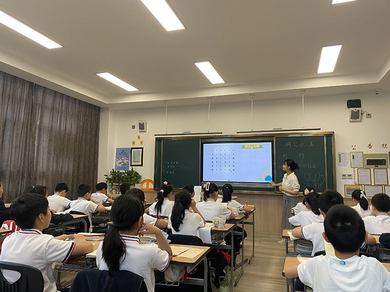 李亞芬老師帶來《確定位置》。李老師從學(xué)生生活實(shí)際入手,采用學(xué)生自主探究、合作交流為主,教師點(diǎn)撥引導(dǎo)為輔的策略,讓學(xué)生在生活實(shí)例中感知,在積極思辨中發(fā)現(xiàn),在具體運(yùn)用中理解學(xué)習(xí)數(shù)對的必要性。