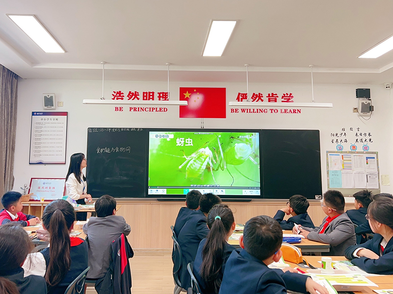 武思佳老師帶來《食物鏈與食物網(wǎng)》。武老師以學(xué)生最喜歡的柯南導(dǎo)入課程,激勵(lì)學(xué)生一起來探案。引導(dǎo)學(xué)生觀察現(xiàn)場圖片,發(fā)現(xiàn)豆苗葉的不同。