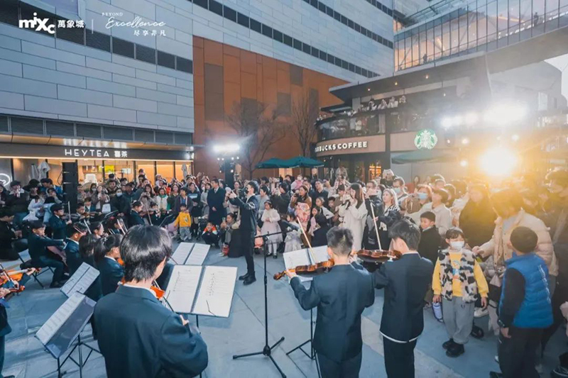 樂團的成員各具風(fēng)采,才華橫溢,富有層次感的音符從孩子們的指尖緩緩流淌,縈繞耳畔飛向天空,這突如其來的驚喜,給觀眾們帶來了一場聽覺盛宴。讓萬象城原本就歡樂的圣誕氛圍,更增添了一抹亮色。