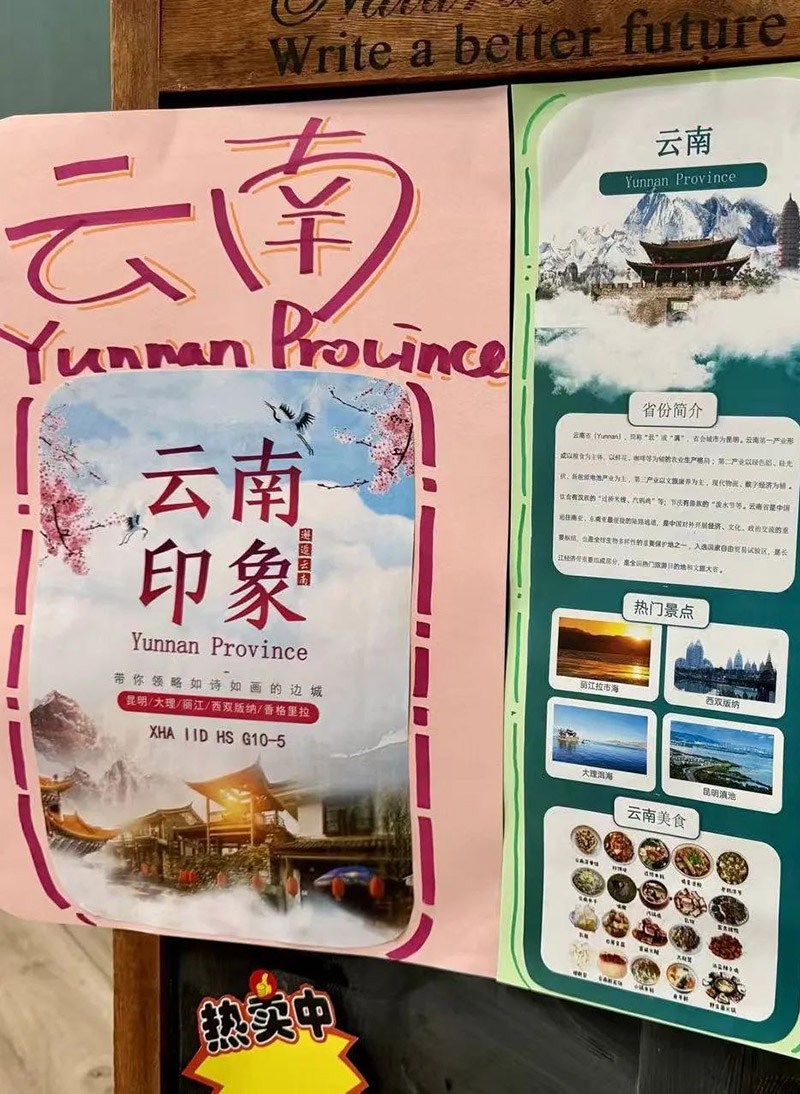 活動現(xiàn)場,各班級精心準(zhǔn)備的主題海報成為了一道亮麗的風(fēng)景線。這些海報不僅展示了中國各個省份的獨(dú)特魅力,還融入了豐富的歷史背景、地域特色和美食文化,讓人目不暇接。學(xué)生們紛紛表示,通過這些海報,他們對中華文化的認(rèn)識更加深入,對祖國的熱愛之情也油然而生。